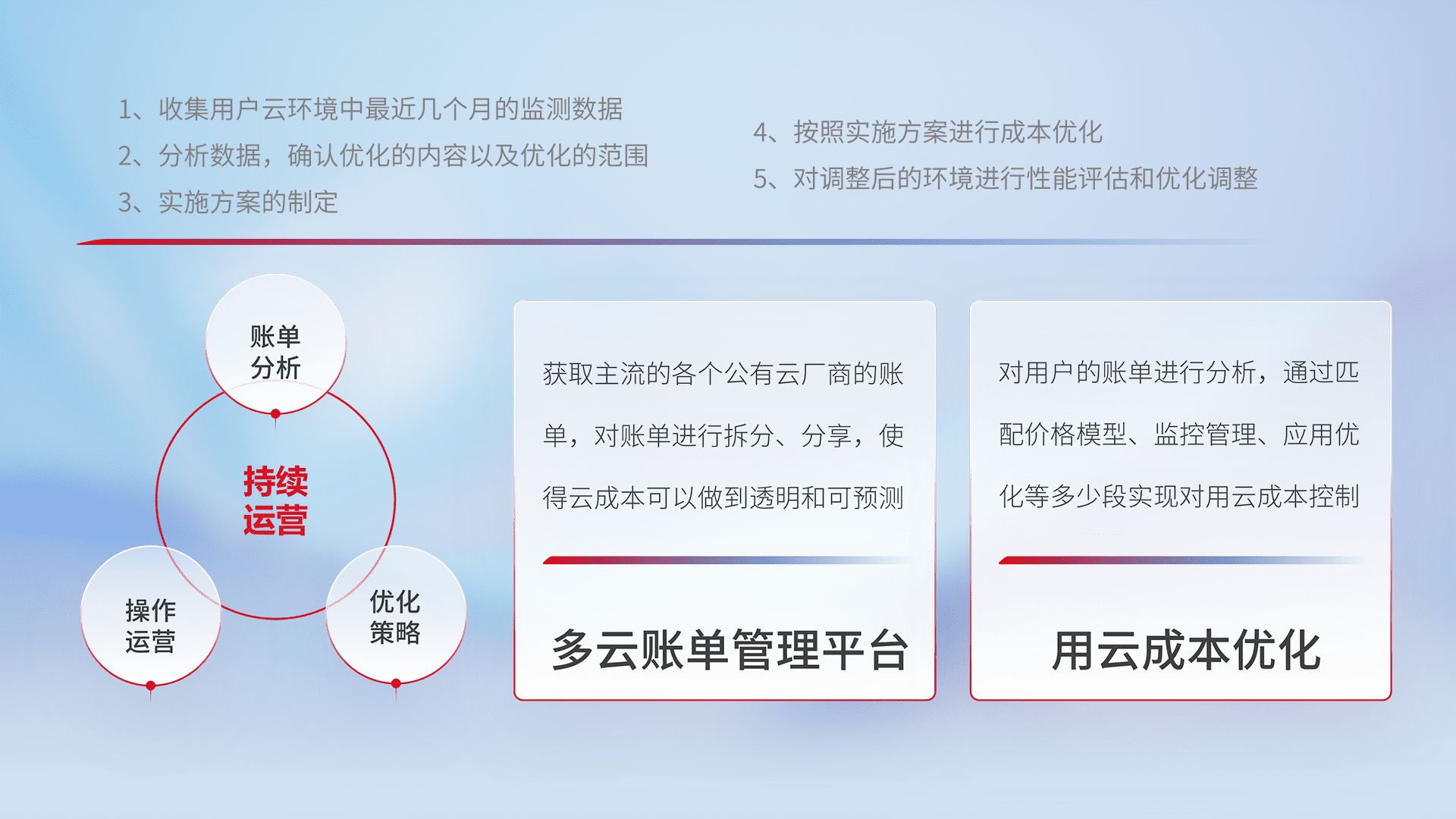 监控业务系统资源开销,,对资源的消耗精确计量,,实现费用的透明化管理,,,不断提升资源使用率,,调整资源购买方式,,,,降低资源费用成本,,用云成本可预测、、、用云费用可优化,,云资源配额有据可依。。